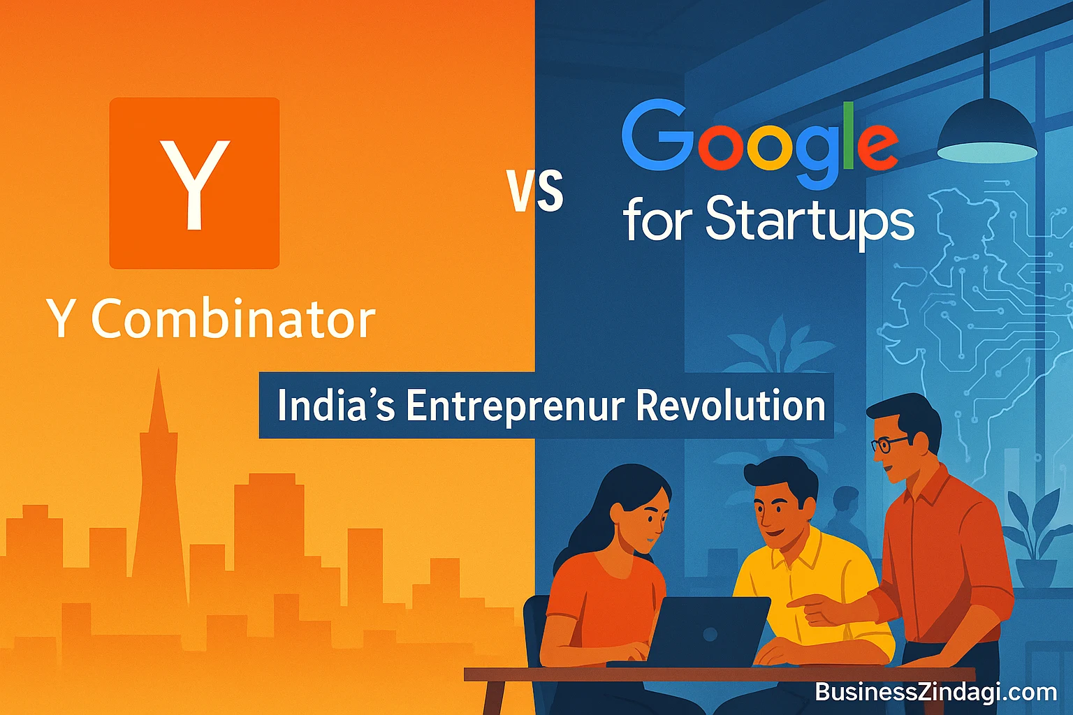 Google for Startups vs Y Combinator, Startup Accelerator India, Google Cloud for Startups, Y Combinator India, Indian Startups, Entrepreneurship 2025, BusinessZindagi