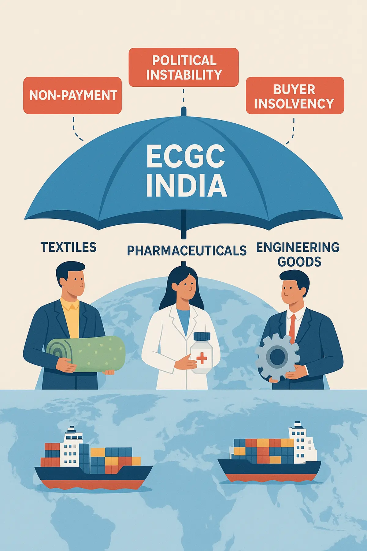 This is where ECGC India (Export Credit and Guarantee Corporation of India) becomes a game-changer. For more than six decades, ECGC has been the safety net for MSMEs, protecting them from risks and giving them the courage to expand into new markets.