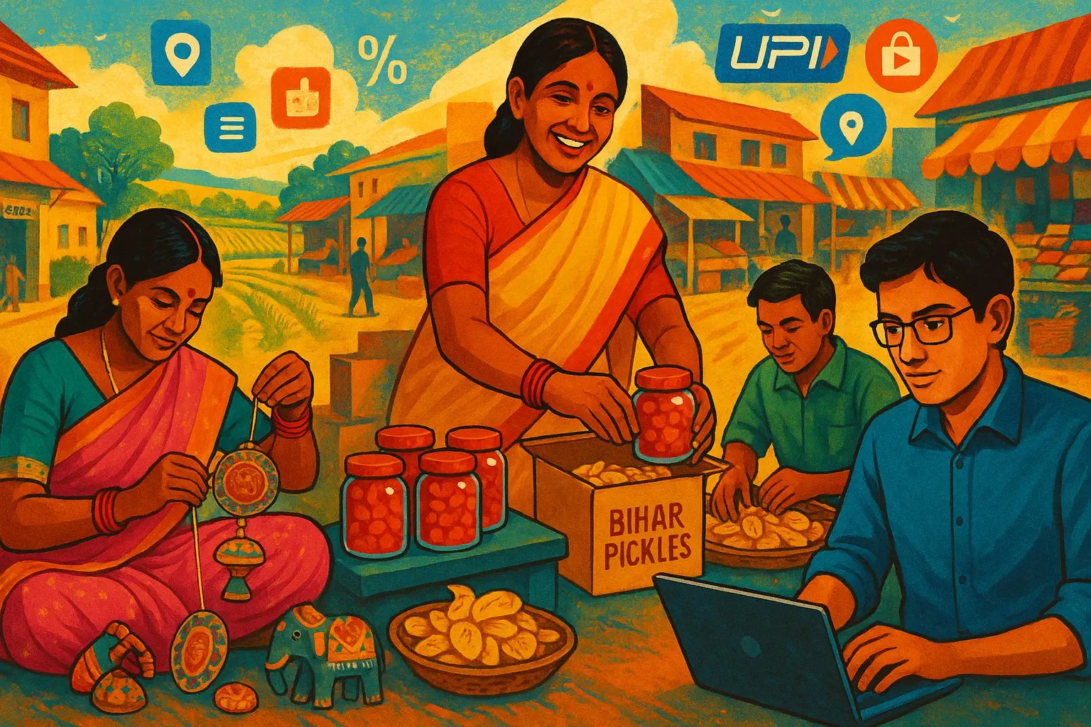 Instagram, WhatsApp Business, ONDC, IndiaMart and Shopify work even from rural areas.